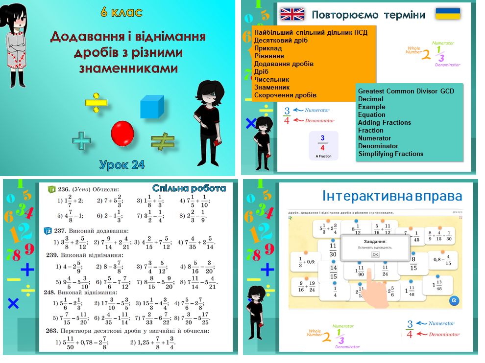 Оновлено "Методичну скарбничку" Урок 24. Додавання і віднімання дробів